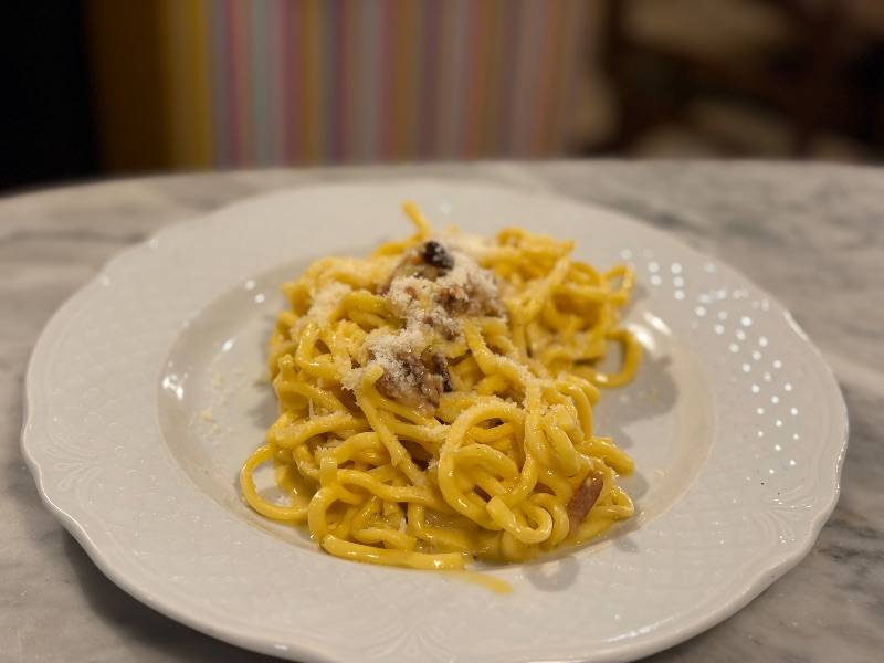 Tonnarelli Pasta with Eggs, Jowl Bacon, Pecorino Cheese and Black Pepper