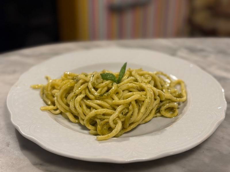 1/2 L Water (Still Or Sparkling) + Tomato Bruschette + Tonnarelli Pasta with Basil Pesto Sauce