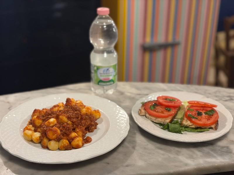 1/2 L Water (Still Or Sparkling) + Tomato Bruschette + Gnocchi with Bolognese Ragù Sauce with Beef Meat