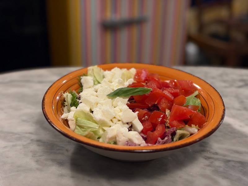 Ensalada, tomates, mozzarella y albahaca