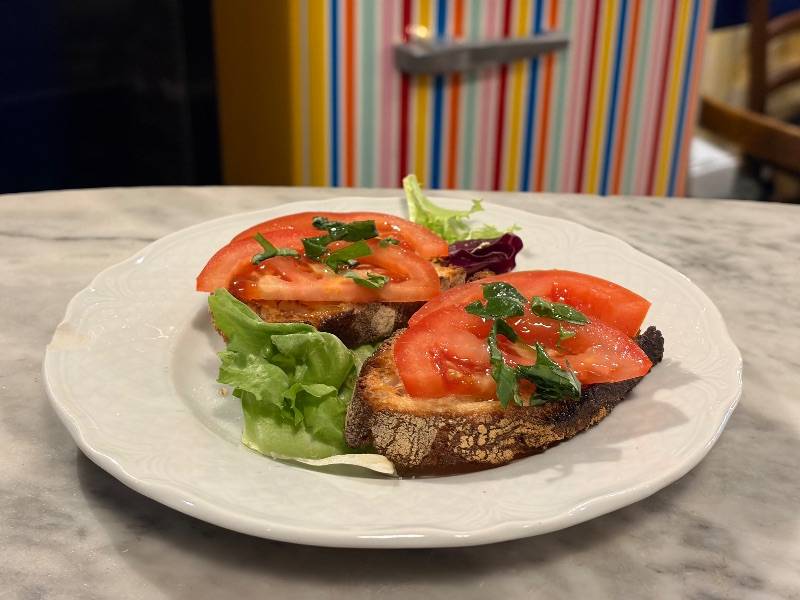 1/2 L de agua (con o sin gas) + bruschetta de tomate + tonnarelli con salsa de trufa y virutas de parmesano