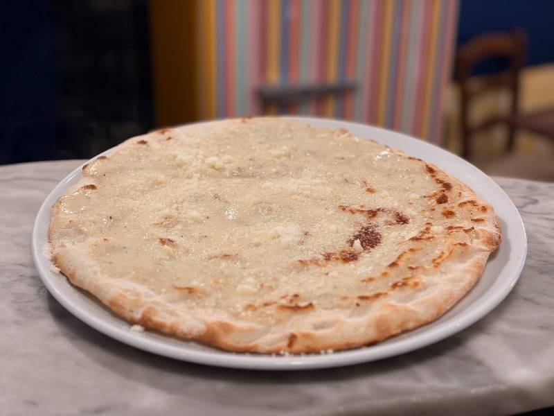 Ons menu omvat een half glas plat of bruisend water, bruschetta met tomaat en gnocchi cacio e pepe.
