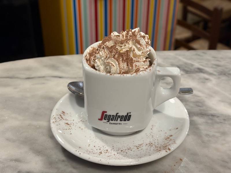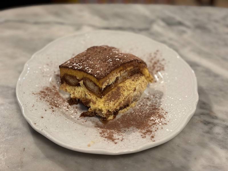 Крем маскарпоне, печенье савоярди, пропитанное кофе, и украшение из какао.