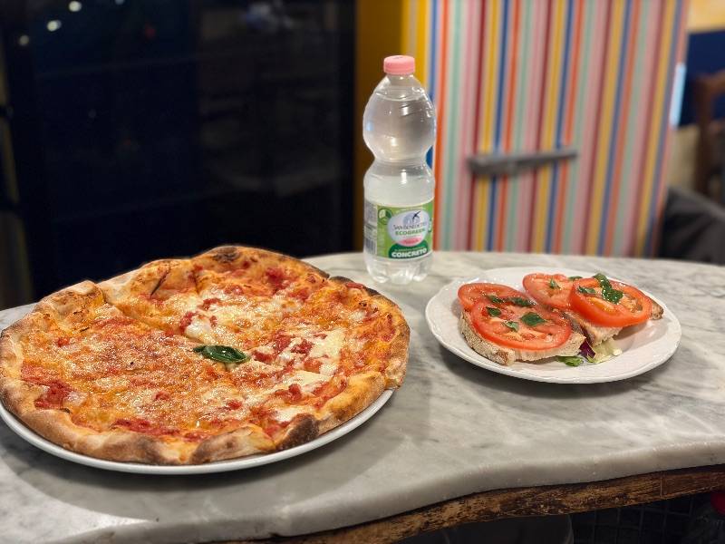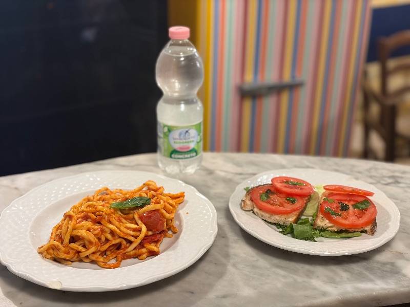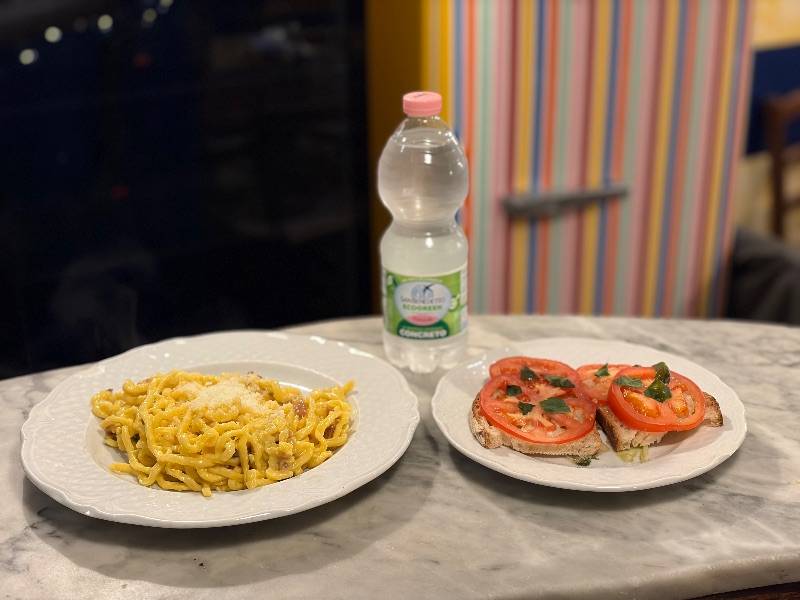 1/2 л воды (негазированной или газированной) + брускетта с помидорами + тоннарелли с трюфельным соусом и стружкой пармезана