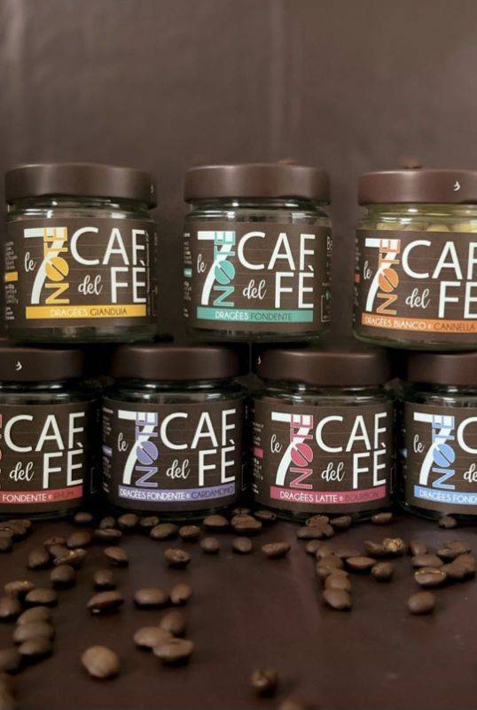 Mini coni al caffè, nocciola , cioccolato ,pistacchio con copertura al cioccolato croccante.