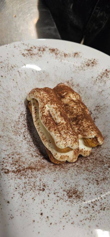 Base crema di carciofi e rucola, fior di latte, semi di sesamo aul bordo. In uscita capocotto artigianale cotto a bassa tempeeatura, pomodorino semi dry di manduria, fungo cardoncello saltato in padella, basilico, polvere di olive, bocconcino di bufala al centro, olio evo
