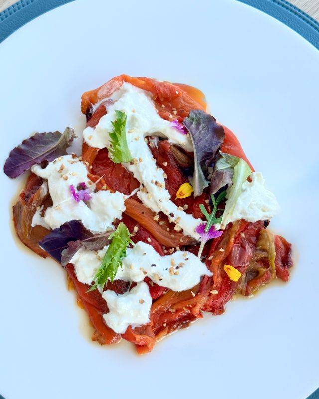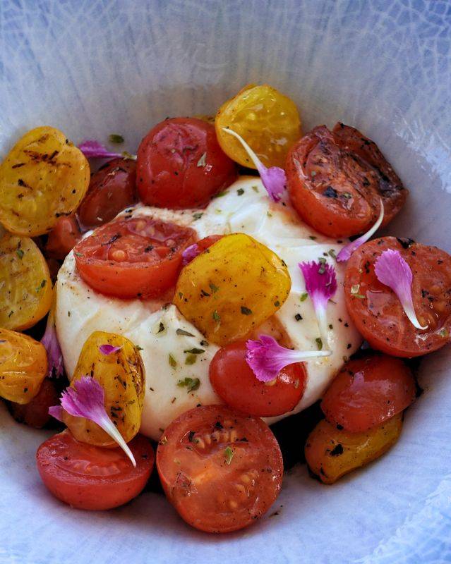 Selezione di pomodori arrosto, accompagnati dalla cremosità della burrata e dal profumo dell’origano, per equilibrare la dolcezza, l’acidità e la morbidezza
