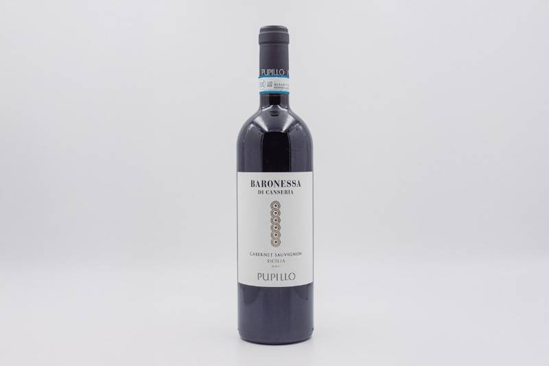 Qui il lato vegetale del Cabernet si scalda diventando più scuro e profondo, modellato dal clima mediterraneo e dai suoli lavici.