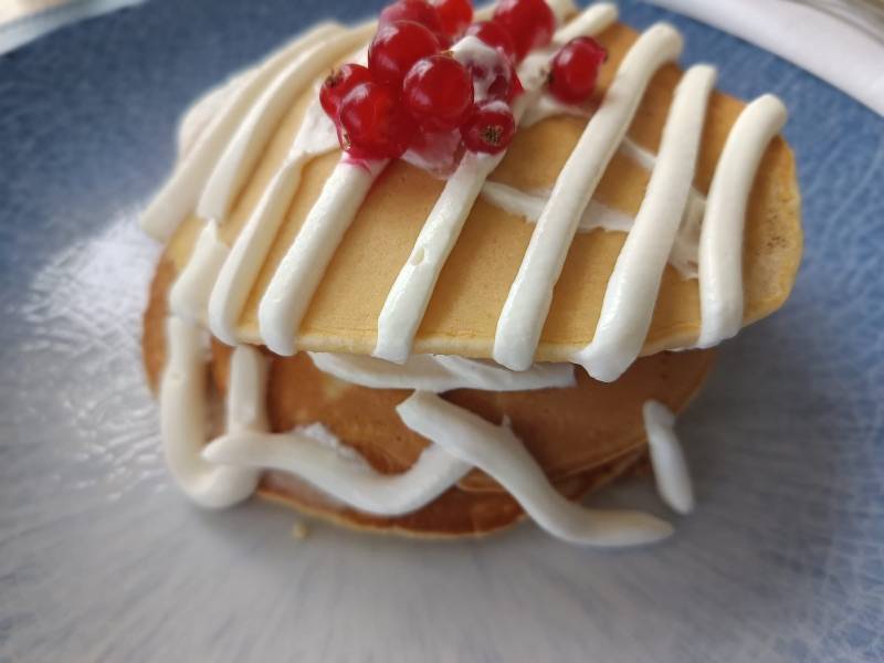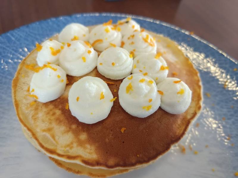 Spremuta d’arancia , succo di mirtillo, purea alla pesca