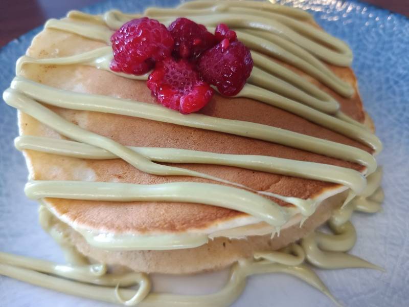 Focaccia, Philadelphia, Salmone, Avocado, granella di Pistacchio, Olio Evo.