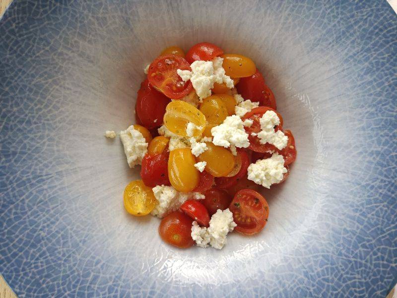 Pomodoro dello Chef, Mozzarella Ragusana, Ventricina Piccante, Datterino Giallo, Olio Evo.