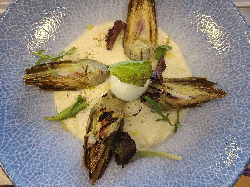 Mozzarella Ragusana, Gorgonzola Dolce, Crema di Carciofi, Speck, Nocciole, Olio Evo.