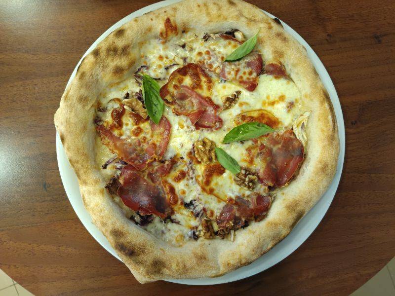 Mozzarella di Bufala, Speck, Radicchio, Funghi Porcini, Olio Evo.