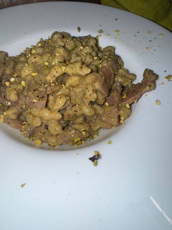 Mozzarella Ragusana, Pesto di Pistacchio Drago, Mortadella, Burrata, Farina di Pistacchio Drago.