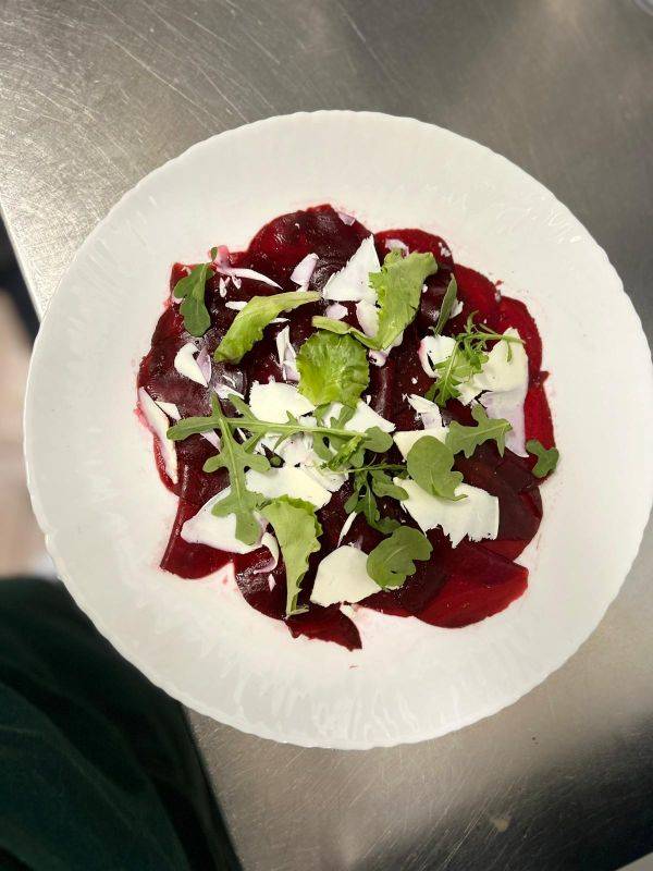 Mozzarella Ragusana, Radicchio, Cipolla, Ricotta, Scaglie di Grana, Olio Evo.