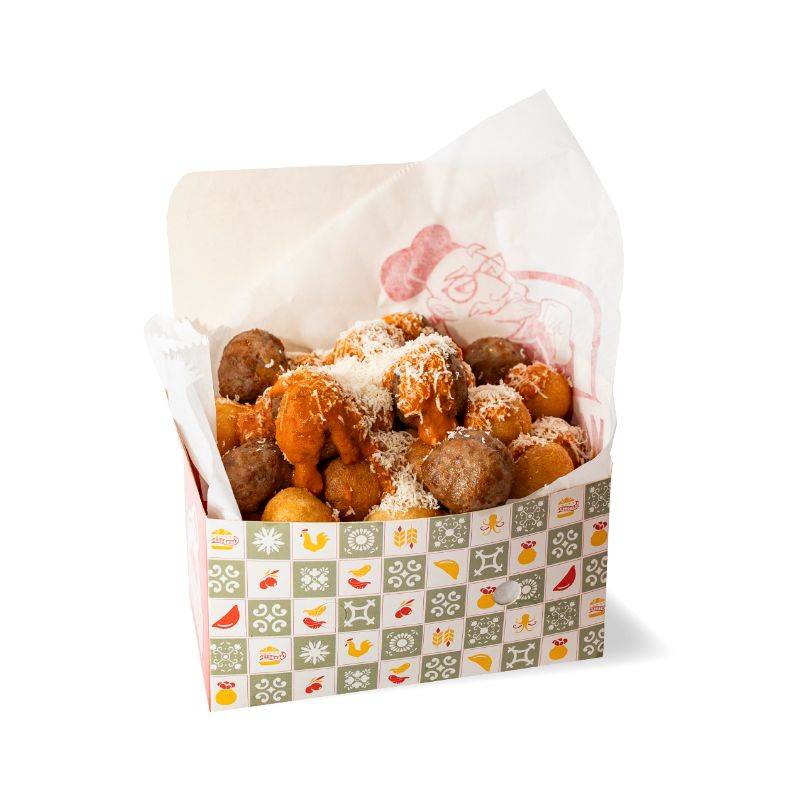 6 fried meatballs of beef and pork, pecorino and Grana Padano, eggs and bread, served with calzone mayo.