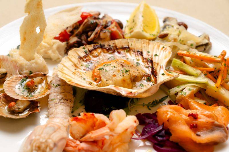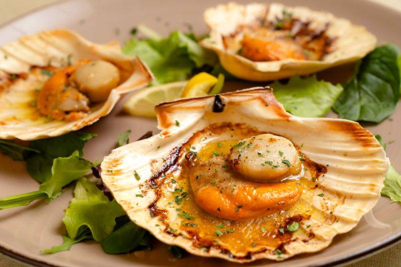 Tre capesante servite nel loro guscio, cotte al naturale alla griglia con la sola aggiunta di un leggero condimento. Un piatto semplice di grande tradizione che esalta il gusto del mare.