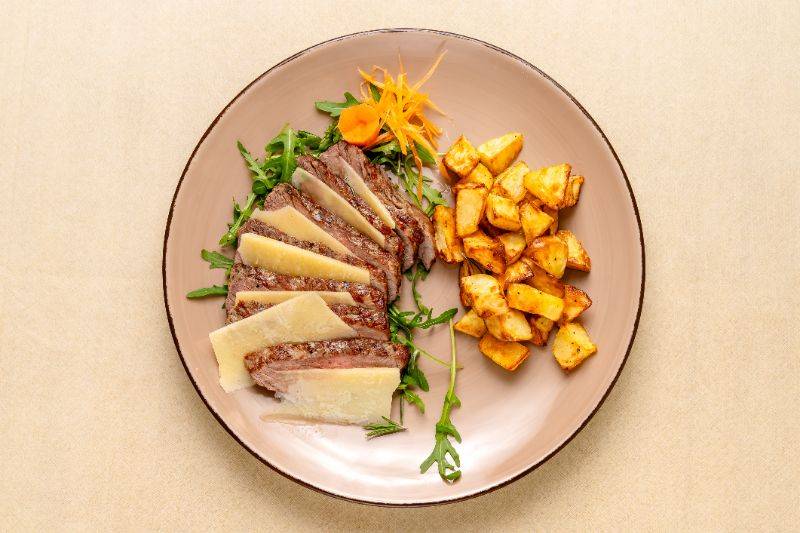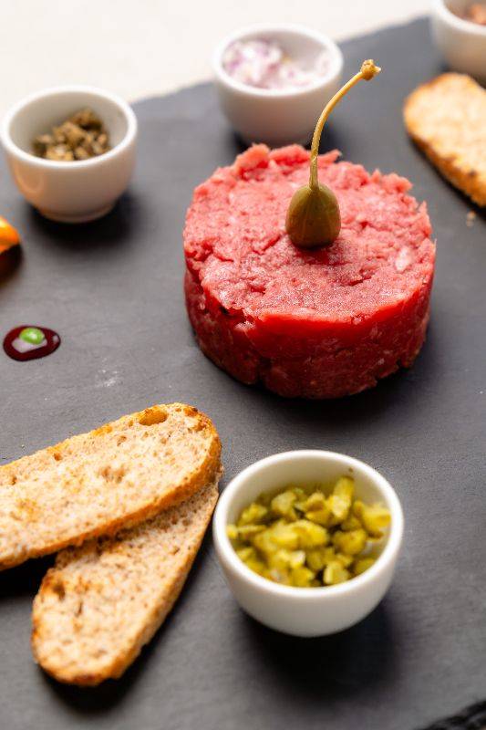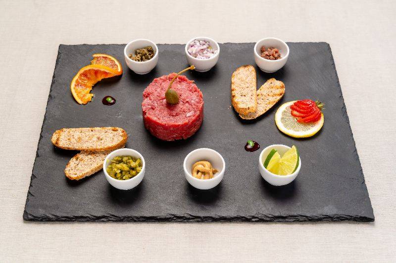 180 g di carne selezionata da filiera Bassanina Km Zero, servita con i suoi condimenti a parte e crostini per un gusto personalizzabile.