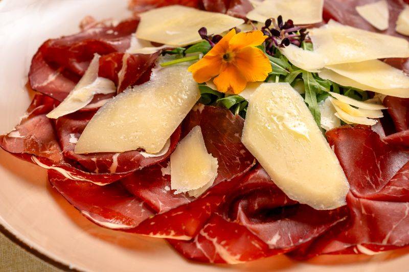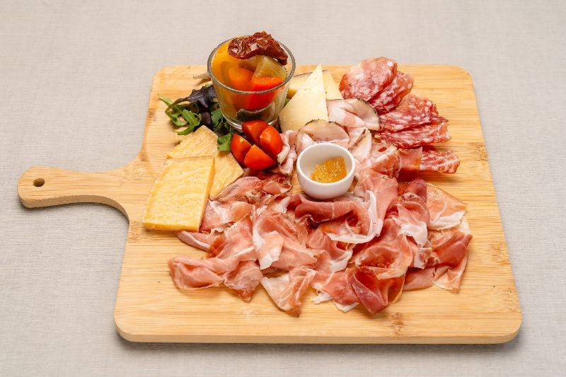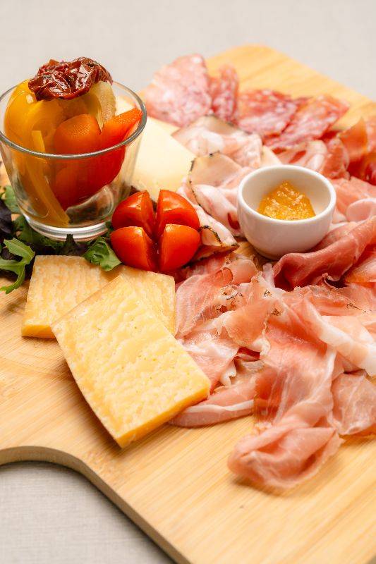 Selezione di salumi e formaggi tipici del territorio italiano.