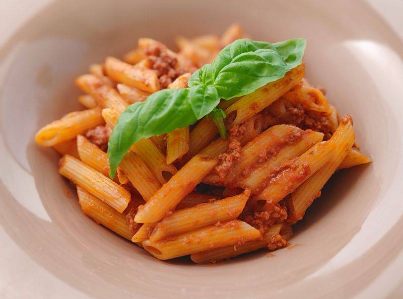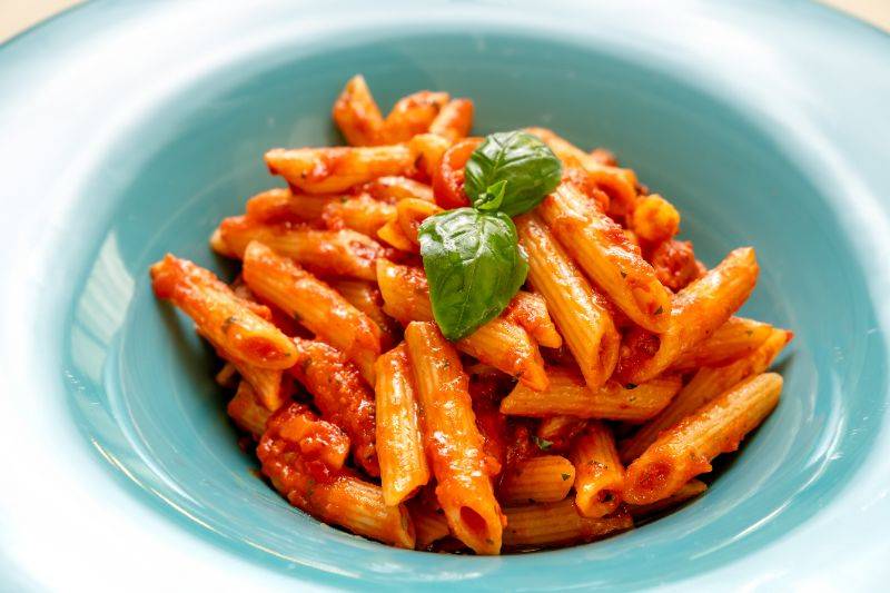 Penne saltate in una salsa piccante di pomodoro, aglio e peperoncino.