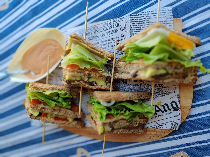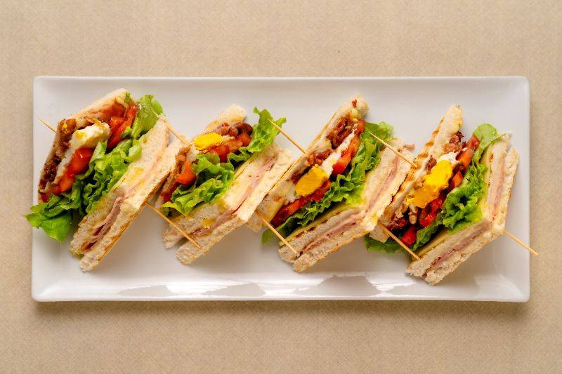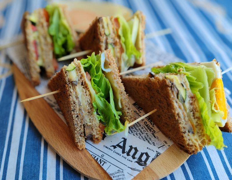 club sandwitch con verdure grigliate, pane, verdure e uovo, cotto alla piastra e servito solo al MaPo skybar