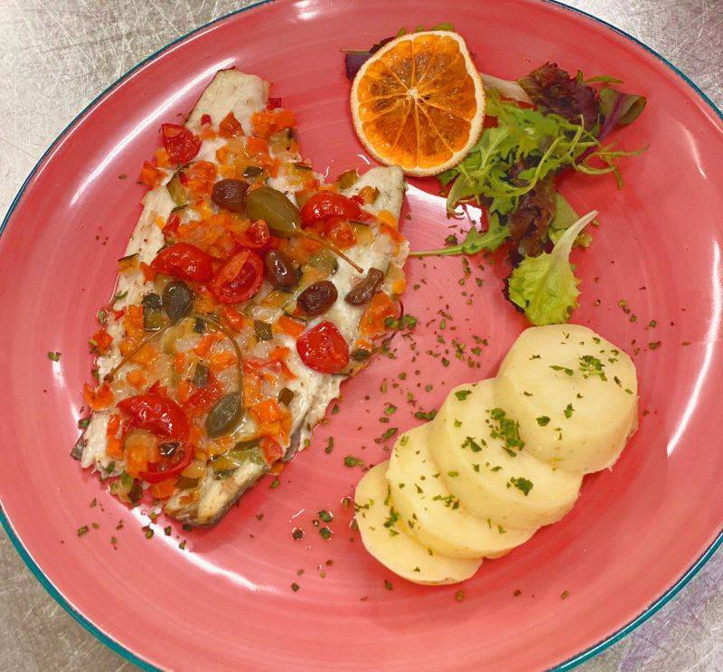 Fettine sottili di vitello arrosto servite con una salsa tonnata, accompagnate da pomodori confit dal gusto dolce e intenso.