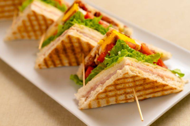club sandwitch classico con pane, prosciutto verdure e uovo, cotto alla piastra e servito solo al MaPo skybar