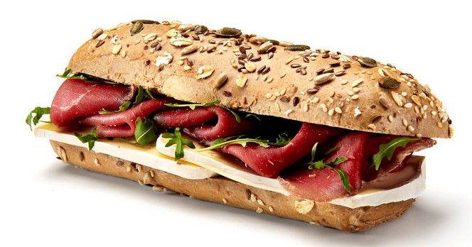 con pane , bacon, prosciutto, uovo, lattuga, maionese, pomodoro