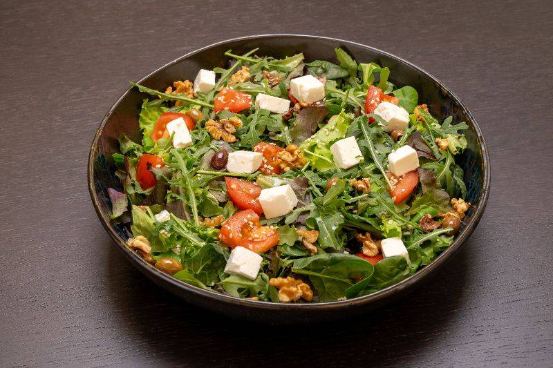 Mix di Insalate, pomodoro ramato, feta, avocado, semi di sesamo, olive, gherigli di noce