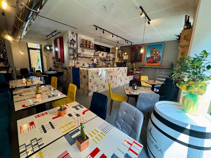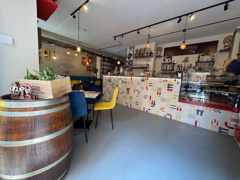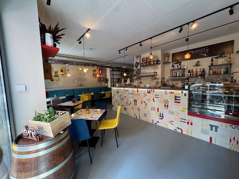 Appena entrati, sarete accolti dalla nostra accogliente atmosfera, dove tavoli colorati e decorazioni moderne creano un'esperienza autentica.