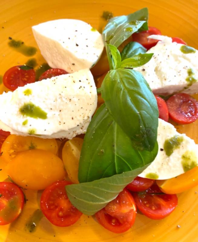 potatoes, tomato pesto, “Cadria” cheese and Burrata