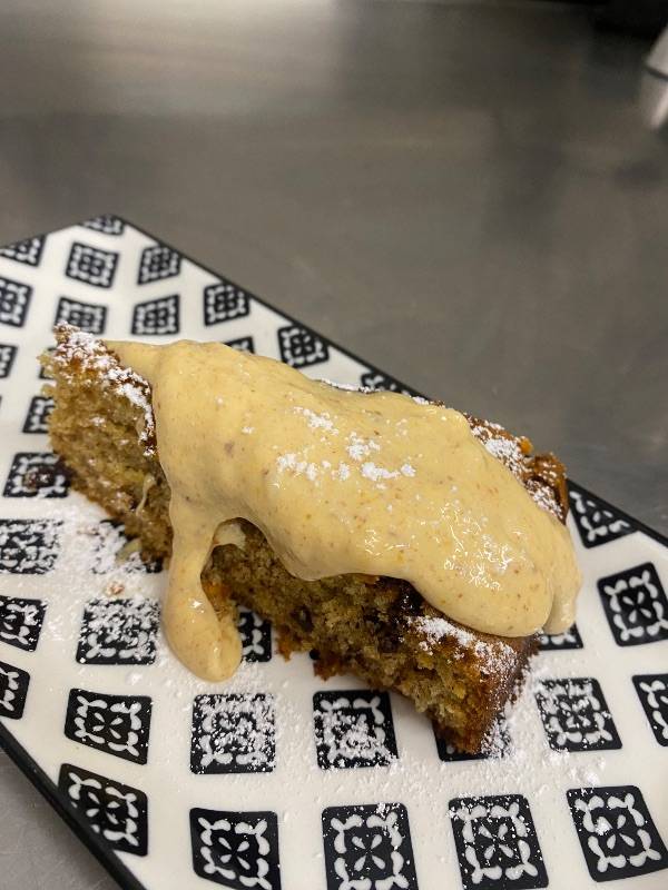Carrot cake with Vanilla cream e nocciole pralinate